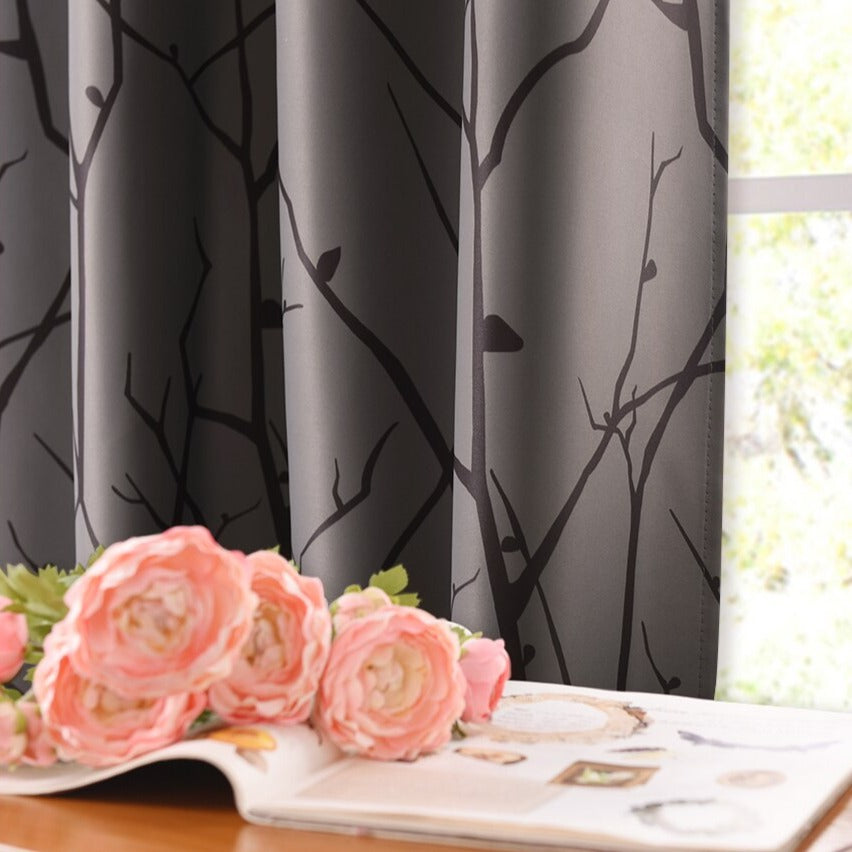 Laat dit prachtige gordijn met modern takkenmotief het middelpunt van uw kamer worden en geniet elke dag van de harmonie en stijl die het toevoegt aan uw woning.