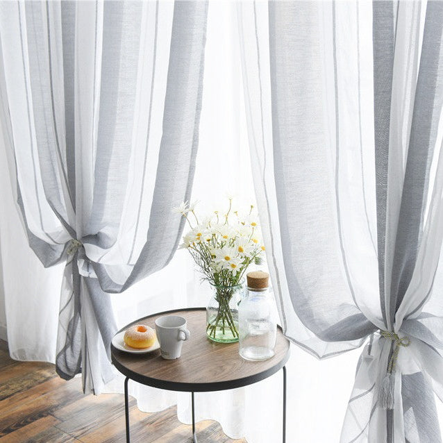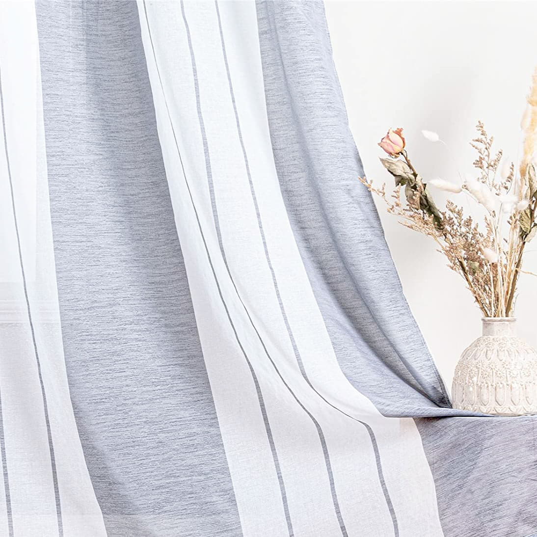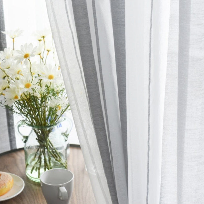 Verlicht je kamer met onze Grijs en wit gestreepte vitrage