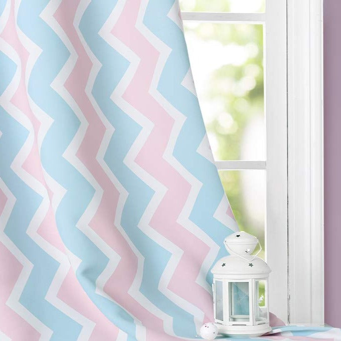Ervaar elegantie en functionaliteit met onze Kindergordijn met roze en blauw zigzagpatroon. Ontworpen om je interieur stijl en gezelligheid te geven, combineren ze verfijnd design met dagelijks gebruiksgemak.