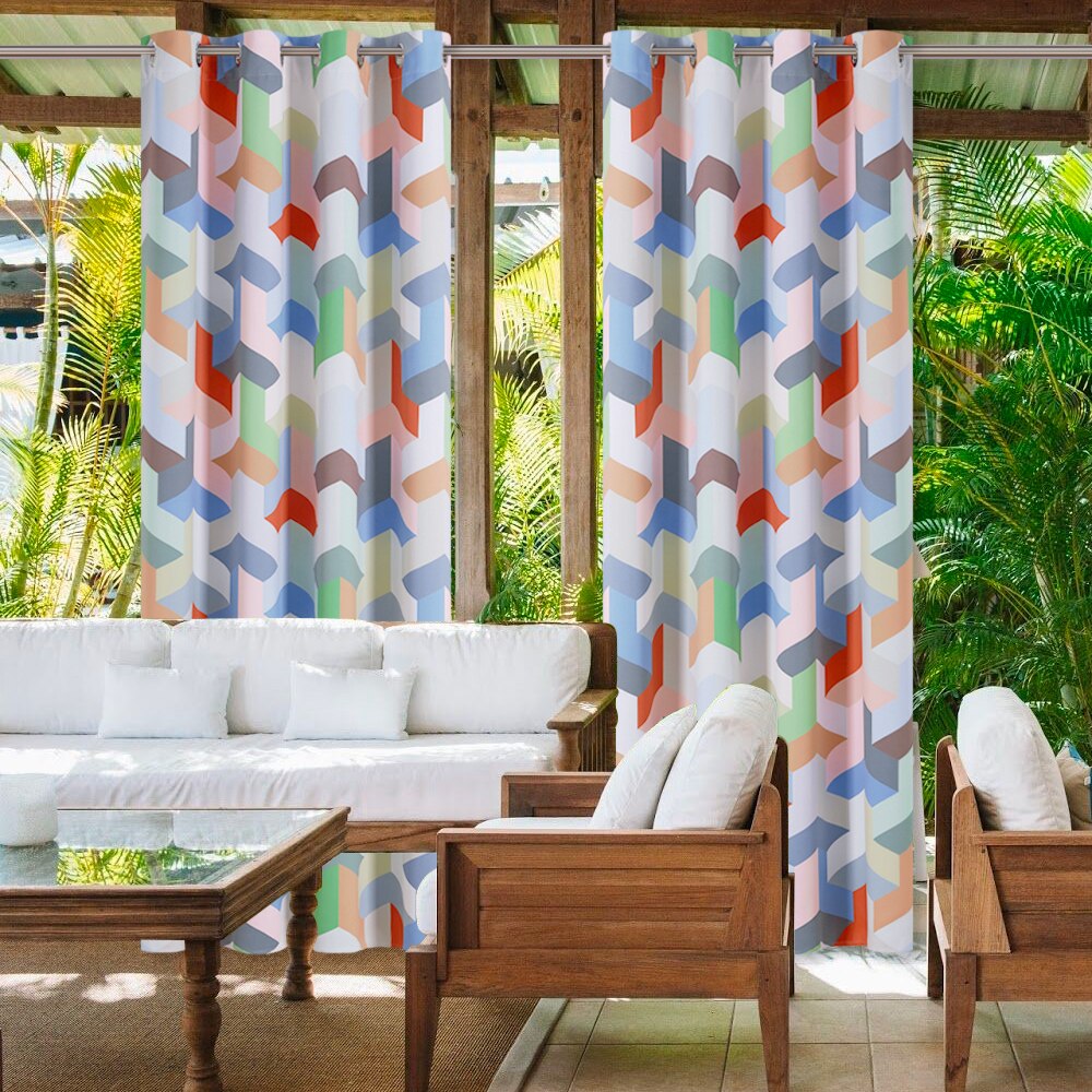 Verlevendig je Buitenruimte met een Kleurrijk Buitengordijn met Geometrisch Patroon