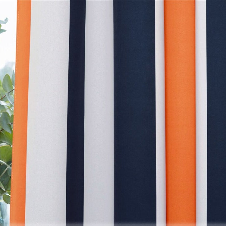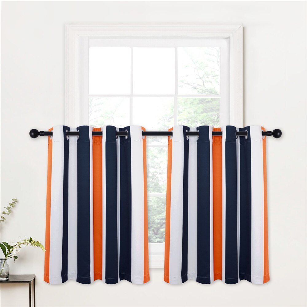 Breng direct sfeer en functionaliteit in huis met dit prachtige korte verduisterende gordijn met strepen. Of je nu je keuken, badkamer, slaapkamer of een andere ruimte wilt opfrissen, dit gordijn is de perfecte keuze. Met zijn levendige oranje, klassieke donkerblauwe en frisse witte strepen voegt het een speels en toch elegant element toe aan je interieur. Bovendien biedt het de nodige privacy en helpt het om hinderlijk licht te blokkeren, waardoor je kunt genieten van een comfortabelere omgeving.