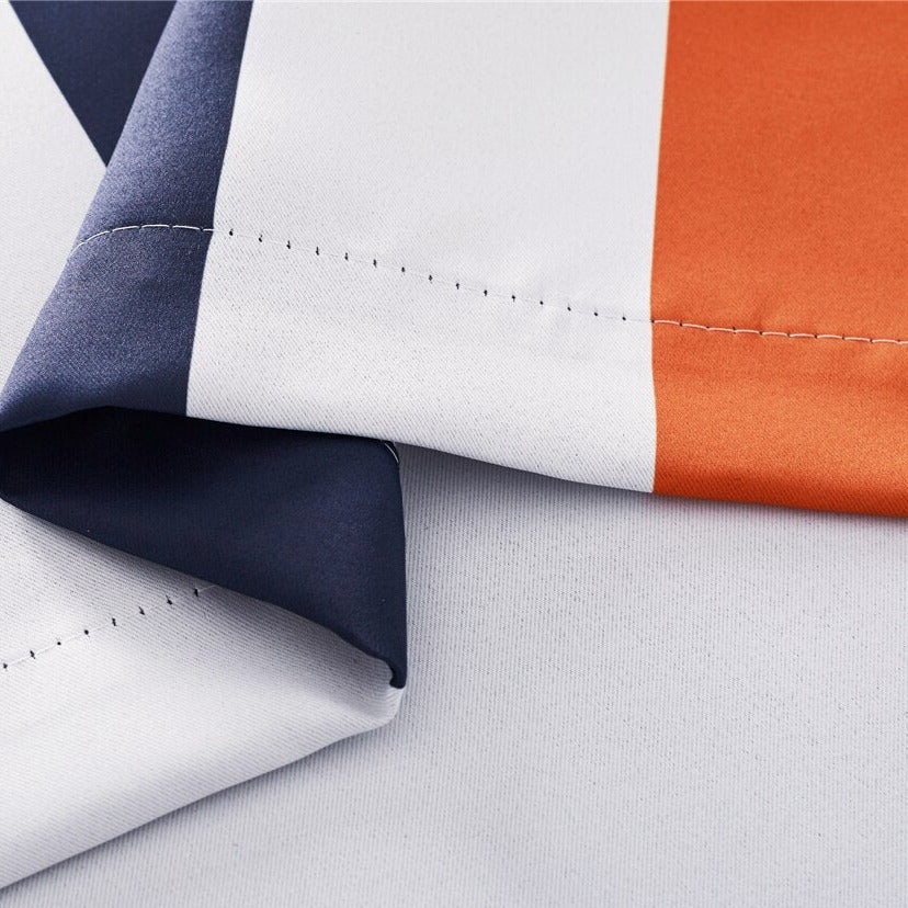 - Stijlvol Design: De opvallende verticale strepen in oranje, donkerblauw en wit geven je ruimte een frisse en moderne uitstraling.