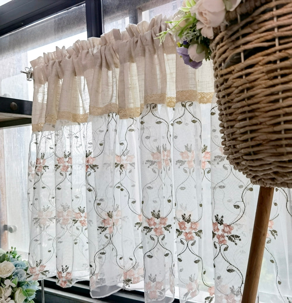 Maak je huis compleet met dit Landelijk bistrogordijn met kant en bloemen