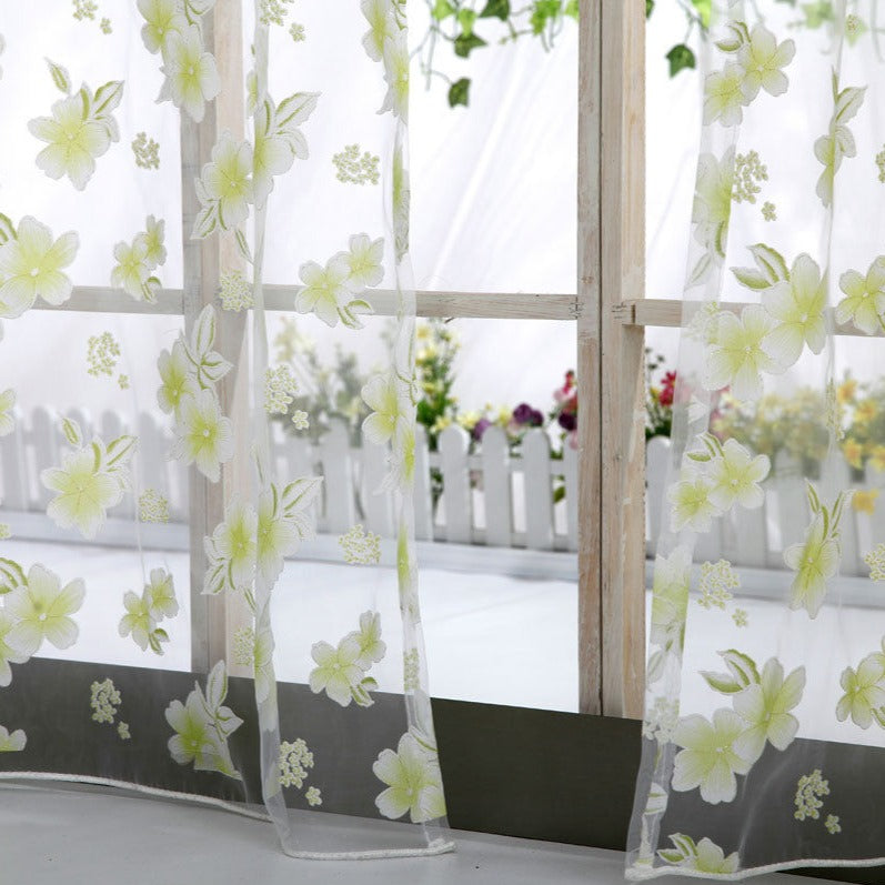 Maak je huis compleet met dit betoverende lichtdoorlatend gordijn met blauwe bloemetjes.