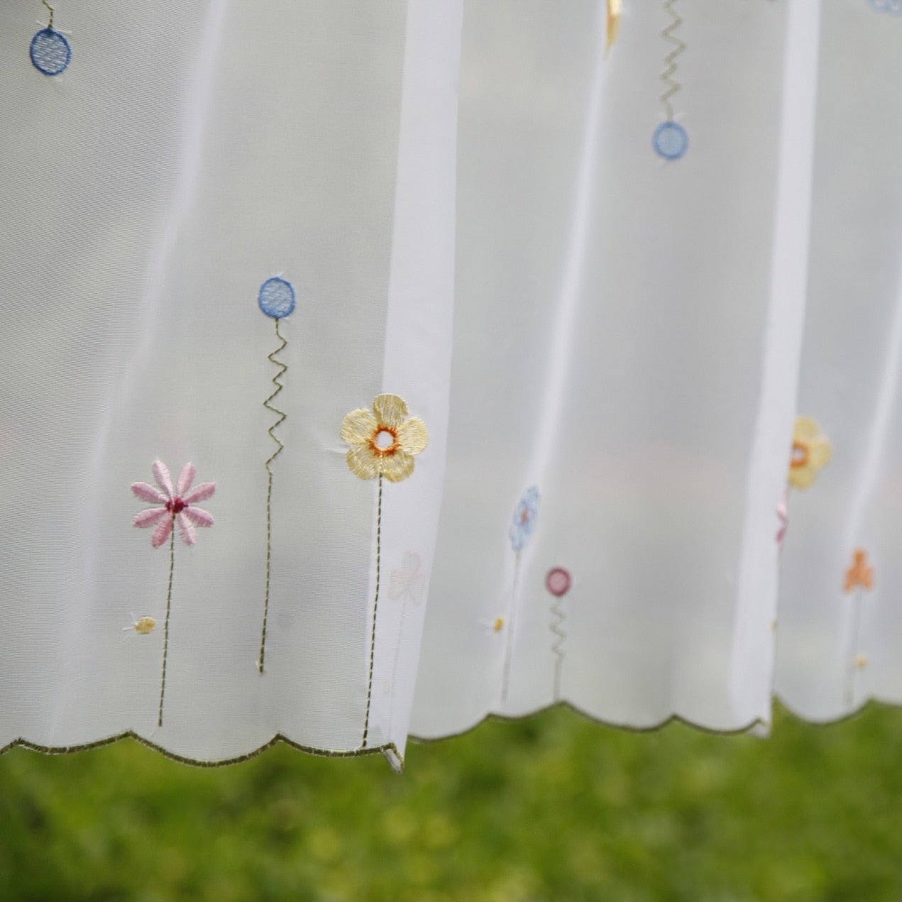 Breng een frisse en luchtige sfeer in uw keuken of bistro met onze prachtige set van twee vitrage bistrogordijnen. Deze gordijntjes zijn speciaal ontworpen om een vleugje elegantie en privacy te bieden, zonder het natuurlijke licht buiten te sluiten. Ze zijn versierd met delicate bloemenpatronen in zachte kleuren, wat zorgt voor een vrolijke en uitnodigende uitstraling die perfect past bij elke interieurstijl.