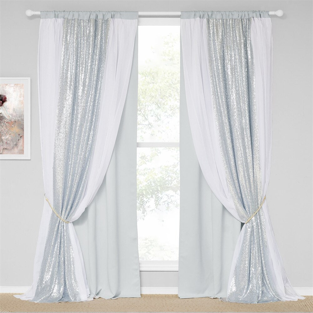 Droom je van een kamer die straalt, zelfs als de zon schijnt? Met ons Verduisterend gordijn Endali met zilveren pailletten creëer je in een handomdraai een luxueuze sfeer en geniet je van optimale privacy. Dit prachtige gordijn combineert een elegante basis van verduisterende stof met een schitterende laag zilveren pailletten, die een betoverende glinstering toevoegt aan elke ruimte. Stel je voor hoe het licht speels danst op de pailletten, terwijl je kamer toch heerlijk koel en donker blijft. Perfect voor de slaapkamer, maar ook een absolute blikvanger in de woonkamer of eetkamer.