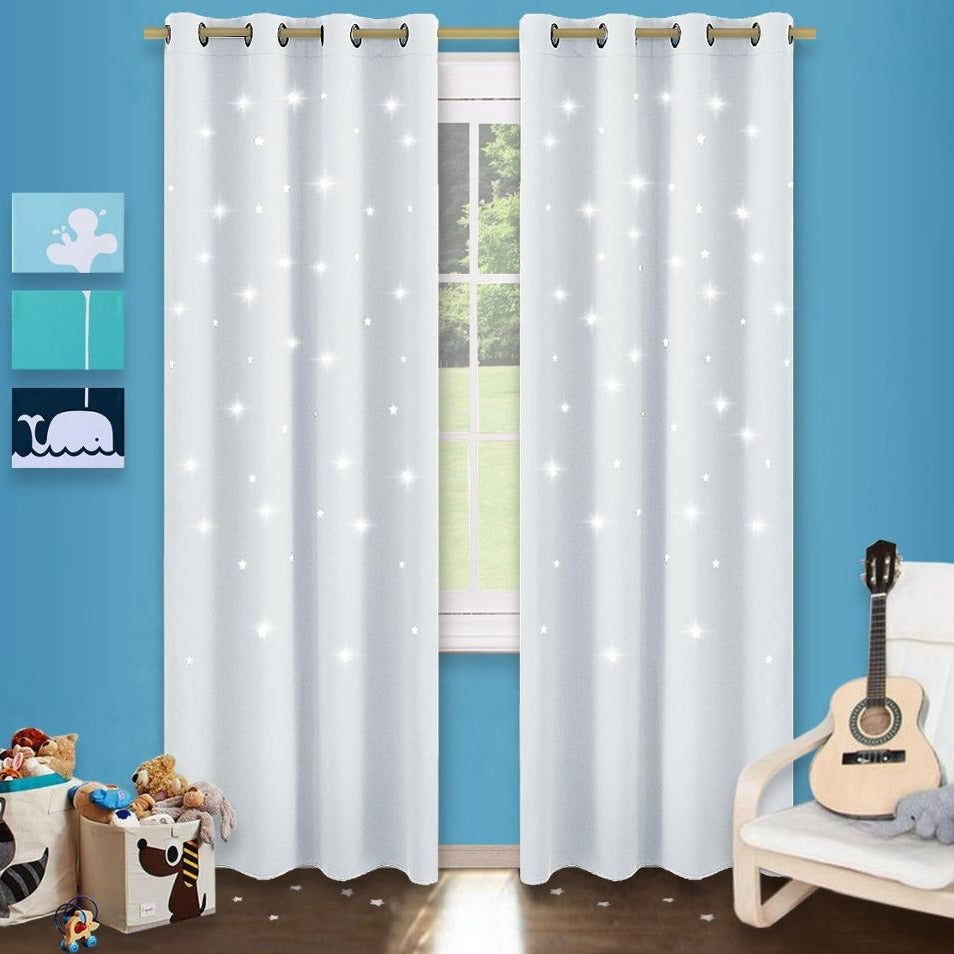 Maak de kinderkamer compleet met dit verduisterend gordijn met sterrenhemel print!
