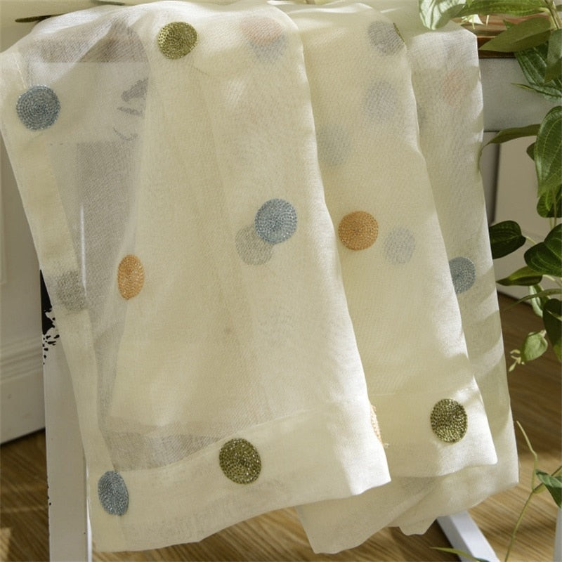 Verlevendig je interieur met ons Vitragegordijn met gekleurde stippen patroon