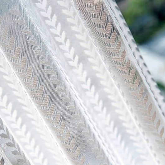 Droom je van een lichte en luchtige sfeer in huis? Onze prachtige witte vitrage met visgraatmotief is precies wat je nodig hebt om je ramen elegant aan te kleden. Dit subtiele, maar stijlvolle gordijn laat moeiteloos daglicht binnenstromen, terwijl het toch voldoende privacy biedt. Het delicate visgraatpatroon voegt een vleugje verfijning toe aan elke kamer, van je woonkamer tot de slaapkamer. Stel je voor hoe de zachte lijnen van het motief een rustgevende en harmonieuze ambiance creëren, een perfecte achtergrond voor alledaagse momenten en speciale gelegenheden.