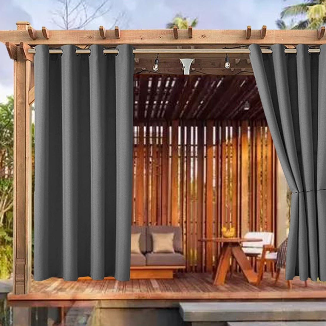 Maak van uw terras een comfortabele plek met ons Zonwerend buitengordijn met ringen terras.